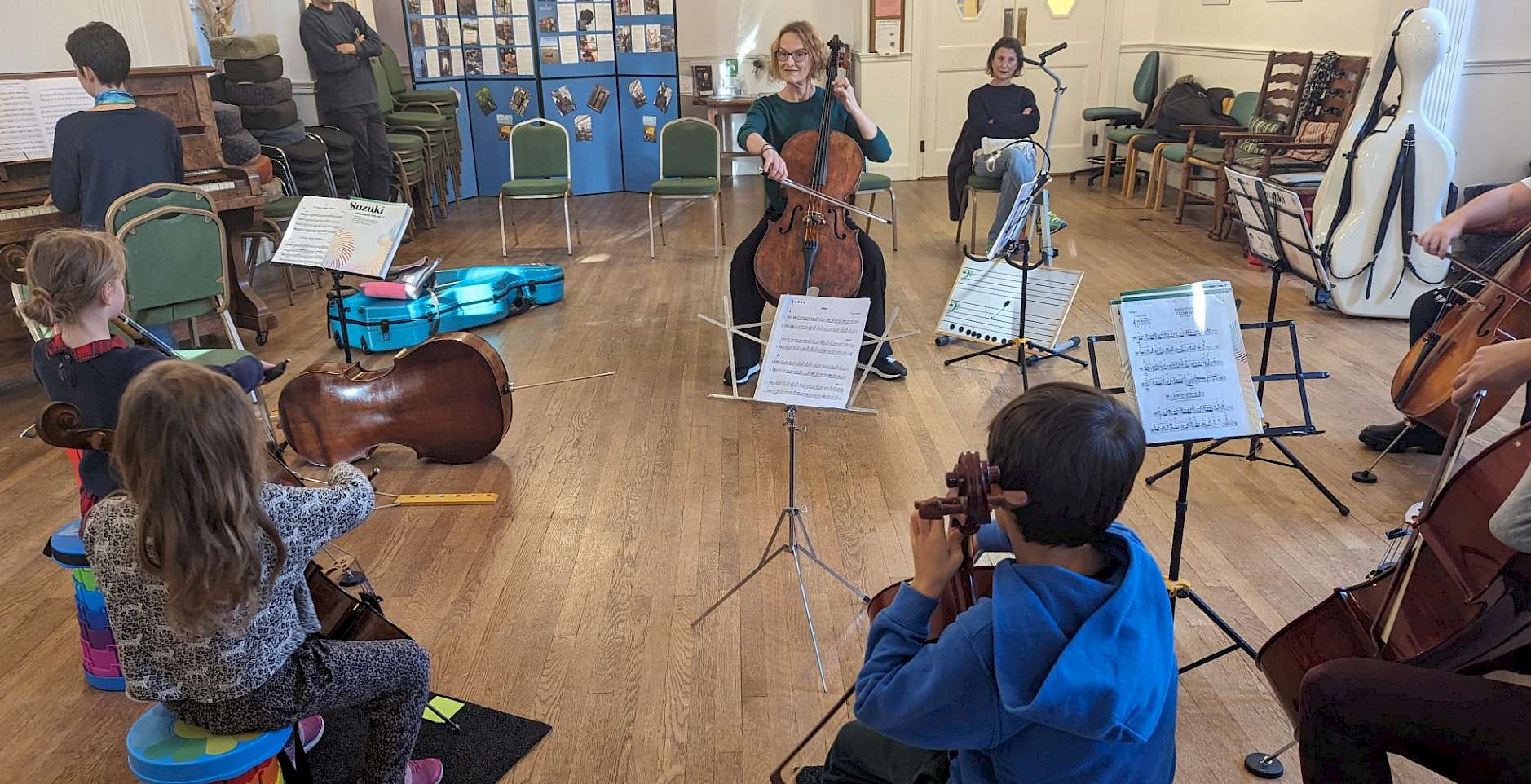 A core element of the Suzuki approach is our community approach to music-making. From an early age, pupils gain enormous pleasure from playing together in their group sessions; learning from and being inspired by each other; playing fun games and improvising and creating.