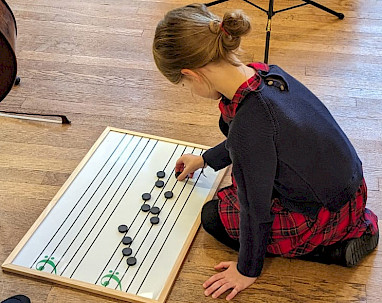 Note-reading is also gradually introduced to pupils, firstly in the form of simple duets with the teacher on a regular basis - and later, with lively ensemble music in our group sessions.